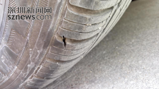 李先生提供的事故发生后的现场图及挪车后的轮胎裂口图