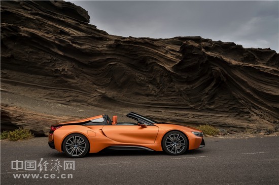 新BMW i8 Roadster结合了BMW i8零排放行驶特性和高性能驾驶体验,将敞篷驾驶乐趣发挥到极致。BMW i8 Roadster将BMW i设计语言融入全新汽车设计理念中,并加入诸多典雅又不失激情的个性化亮点。软质车顶重量较轻,加强了这款跑车低重心所带来的贴地感。全电动车顶可在最高50公里/小时车速下无声地打开/关闭,整个过程只需要15秒。BMW i8 Roadster在轻量化设计方面同样出色,与Coupe车型相比增重不到60千克。无框鸥翼式车门采用了碳纤维复合材料(CFRP)和铝合金外壳,挡风玻璃框架和侧裙板则大量采用碳纤维。