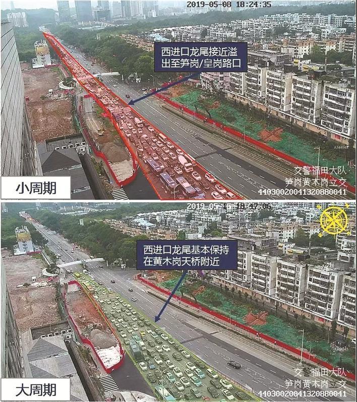 笋岗/华富路口大小周期运行对比图。刘明/图